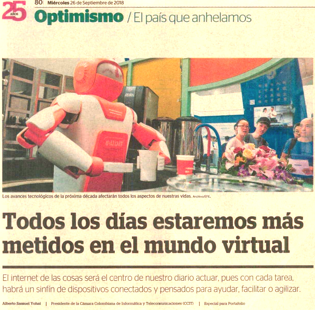 Así comienza el análisis que el presidente ejecutivo de la CCIT, Alberto Samuel Yohai, escribió para el prestigioso diario. Una visión, una mirada que desde la Cámara apoyamos, sentimos y expresamos, en nombre de todos nuestros afiliados, por un sector de las TIC sano, eficiente y productivo, sobre el cual el Gobierno de Iván Duque construirá el camino de la consolidación socioeconómica del País hacia una sociedad digital vigorosa y que brinda prosperidad a todos.